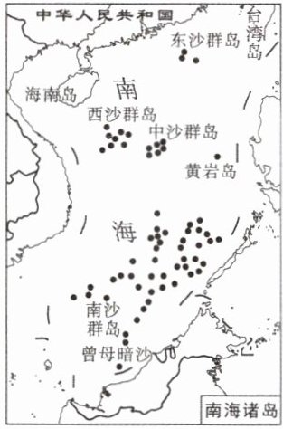 14.B 15.B [解析]第14题,西沙群岛最大的岛屿是永兴岛;黄岩岛属于中沙群岛;我国最南端的岛屿是曾母暗沙;黄岩岛位于南海东部。第15题,季节性休渔和保护红树林有利于打造“南海粮仓”,实现海洋可持续发展,②③正确;用电网捕鱼和采挖珊瑚礁不利于实现海洋的可持续发展,①④错误。