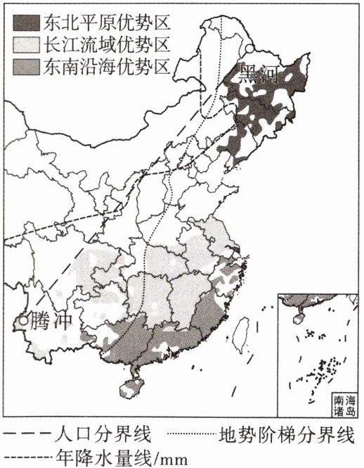 |分界线|与______年降水量线大体一致| | |