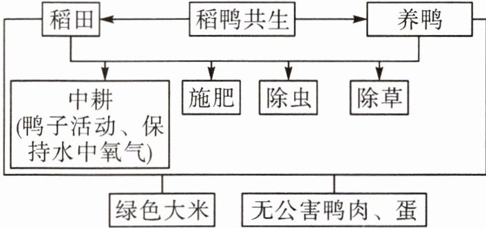 (3)鸭子在稻田生长,能够除去杂草和害虫;鸭子的粪便是良好的农家肥料,能减少农药和化肥的使用,有利于提高土壤的肥力和改善土壤环境。