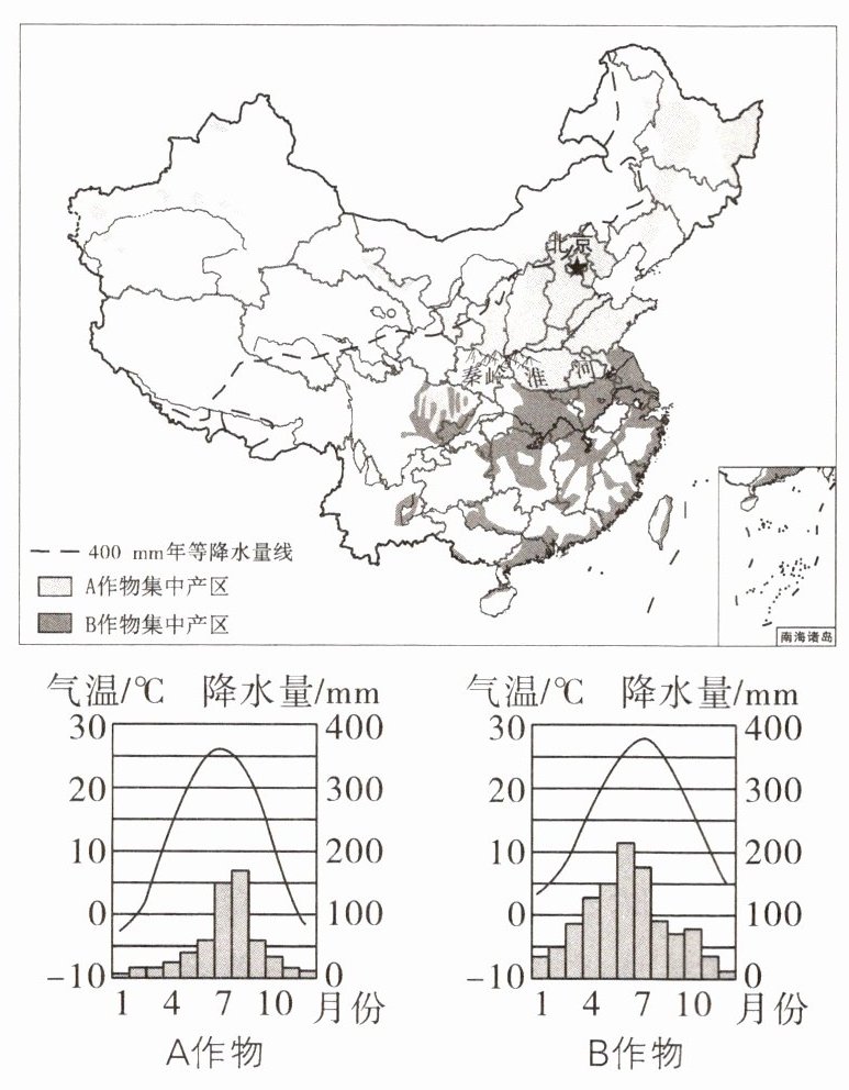 (2)从地形、气候条件简析A、B作物集中产区发展粮食生产的共同优势条件。