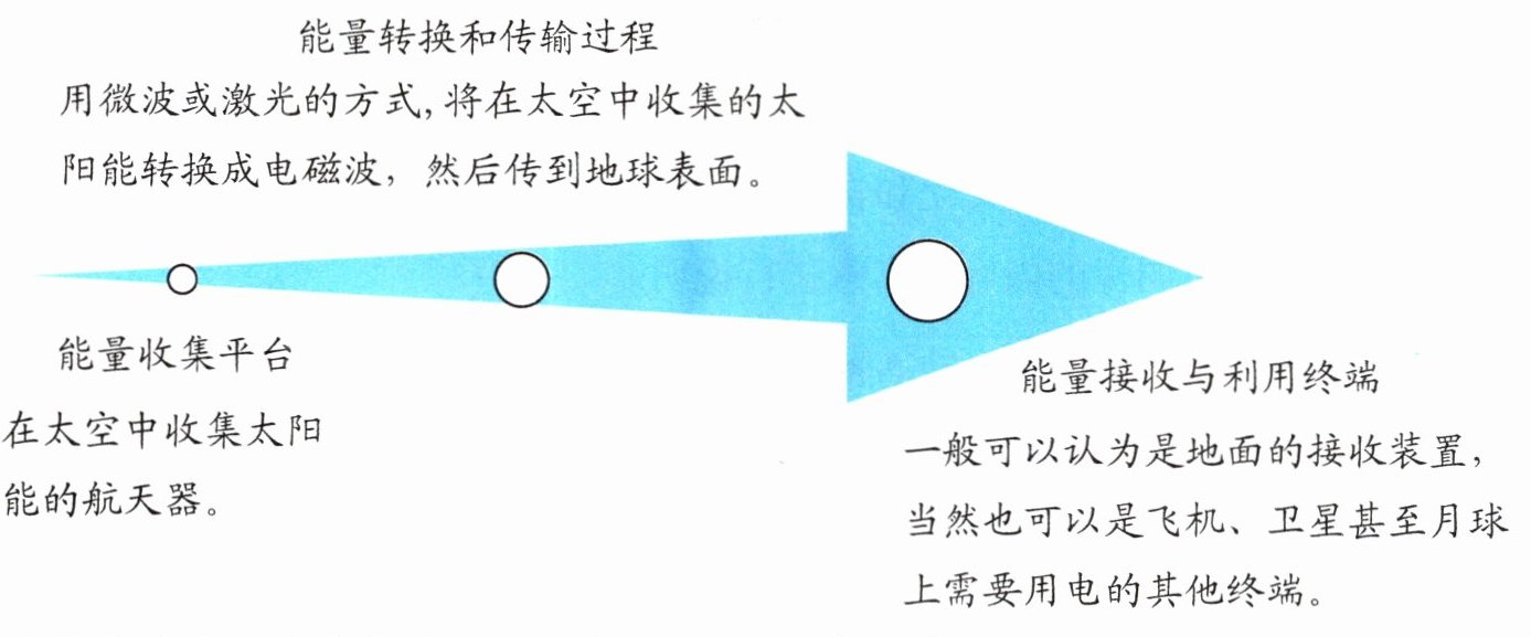 (3)太阳能电池板将太阳能转化成电磁波后,全部传输至地面的接收装置。(