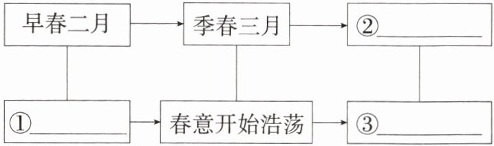 (1)新考法思维导图「☆」本文把春天分为三个节奏,春意由浅入深。请结合全文把下面的思维导图填写完整。(3分)