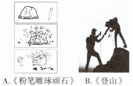 (2)(示例1)A 这幅图可以理解为朋友之间能相互影响,就像粉笔雕琢顽石一样。一个人的力量可以改变、塑造另一个人,好朋友能够用自己的品质、思想等慢慢影响对方,去除对方不好的部分,从而共同进步。