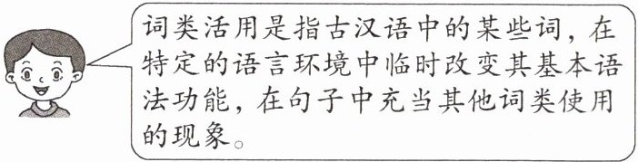 3. 小语对文言文中的词类活用现象很感兴趣,他整理了课文中的相关词语,请你帮他解读出来。