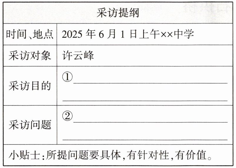 4. 如果《红岩》中的许云峰穿越时空来到你身边,你想围绕他在地牢的经历进行采访,请将下面的采访提纲填写完整。