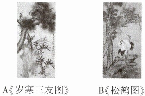 6.答案 B《松鹤图》。理由:松鹤图是一幅祝寿图,在传统文化中,松代表长寿,鹤也代表长寿,符合祝寿的主题;而《岁寒三友图》主要体现的是坚韧不拔的精神品质,不符合祝寿主题。 解析 根据知识卡片的介绍可知,“松”代表长寿、坚贞,“竹”代表坚贞,“梅”代表高洁,“鹤”代表长寿。鹤与松树一起构成的《松鹤图》,有“松鹤延年”的意味,最符合祝寿的主题。