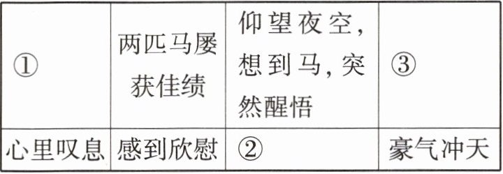 (1)①认为自己生不逢时,未能名马配英雄 ②丝丝内疚 ③骑马奔向草原深处