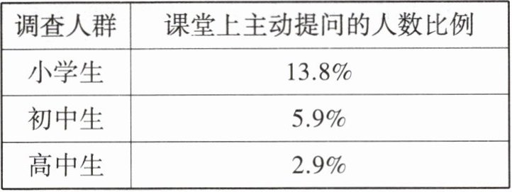 (1)从小学生到高中生,课堂上主动提问的人数比例逐渐降低。
