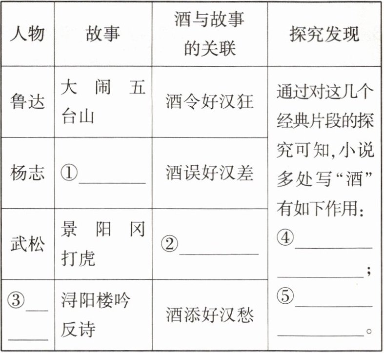 3. [2025广东广州三中月考改编]《水浒传》中有很多与“酒”有关的故事,请仔细阅读下表,完成探究任务。
