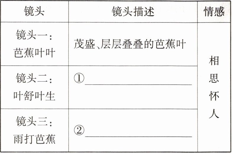6.诗画摄影协会准备以《咏芭蕉》为素材制作一段视频,请你完善下面的拍摄脚本。
