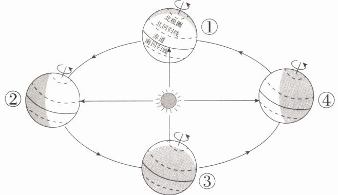 7.C 2月9日当天,太阳直射南半球,四川省达州市昼短夜长;北极出现极夜现象;地球运行至公转轨道中冬至日(12月22日前后)到春分日(3月21日前后)之间,即图中的④①之间。
