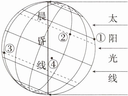 「2025 陕西西安高陵期中」地球的自转周期较短,日温差小,给我们创造了适宜的温度环境。结合地球光照图,完成 1—3 题。