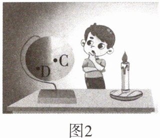 如图2所示,在地球仪上标注C、D两点,放在暗室里,以蜡烛火焰为光源照射地球仪。
