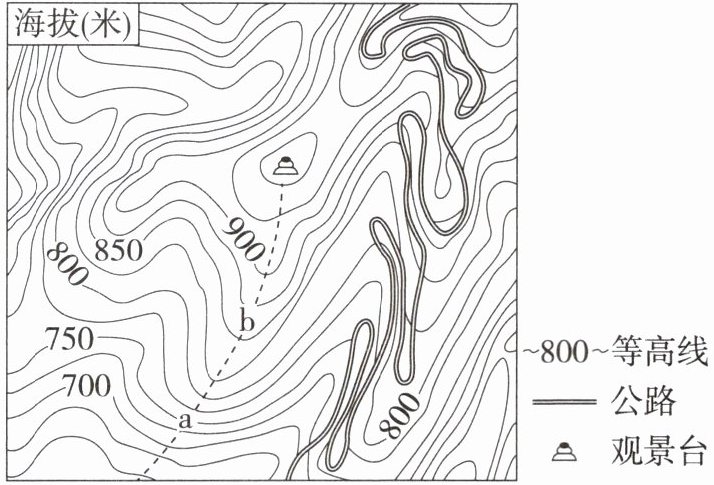 (2)修建公路尽量沿等高线进行,可以减小坡度,修建公路更方便,汽车行驶也更加省力与安全。