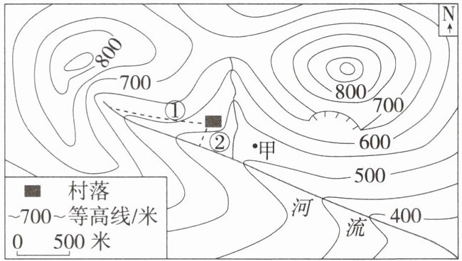 11.为解决图中村落用水问题,当地计划修建一条饮水渠道,在①②两条饮水渠道中,你认为最适宜的线路和理由分别是( )