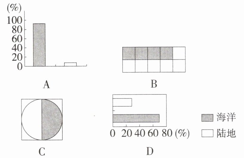 以下能够正确反映地球表面海陆面积比例的是 ( )