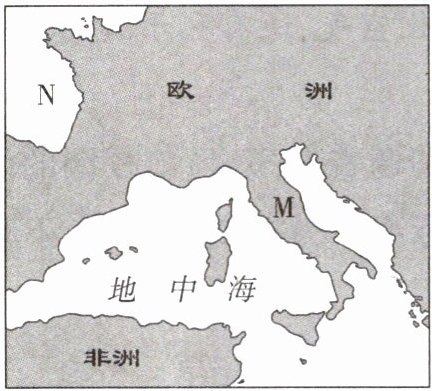 3.D 大陆与它周围的岛屿合起来称为大洲。4.B M是陆地伸进海洋的凸出部分,称为半岛。5.A 由图可知,N是位于欧洲西侧的海洋,为大西洋。