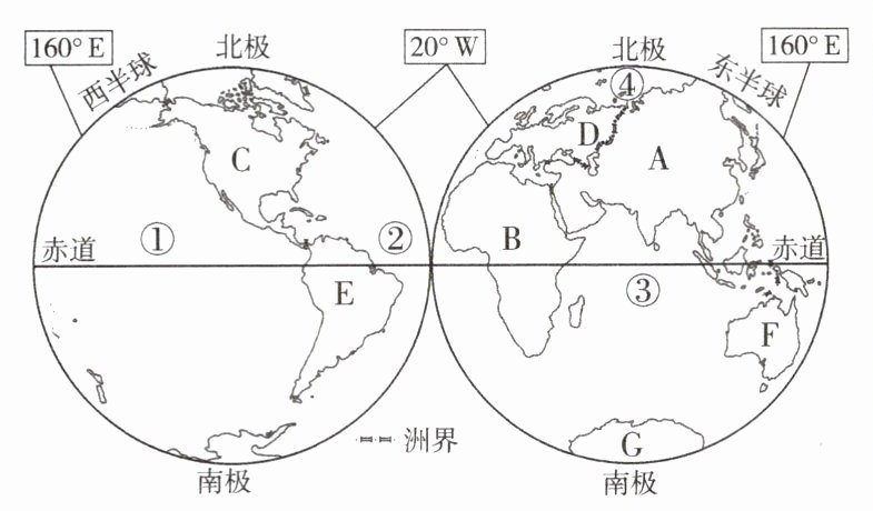 (1)大洲:A____、B____、C____、D____、E____、F____、G____。