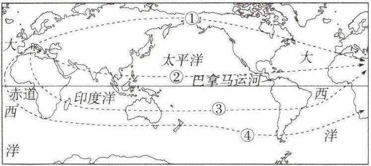 (1)两位探险家环球飞行的线路最接近图示四条线路中的____(填序号)。
