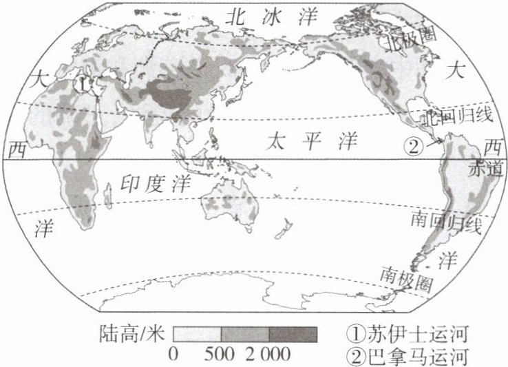 17.区域对比「2025山东济南长清期中」(19分)地球表层的差异无所不在。下图为世界海陆分布图。读图回答下列问题。