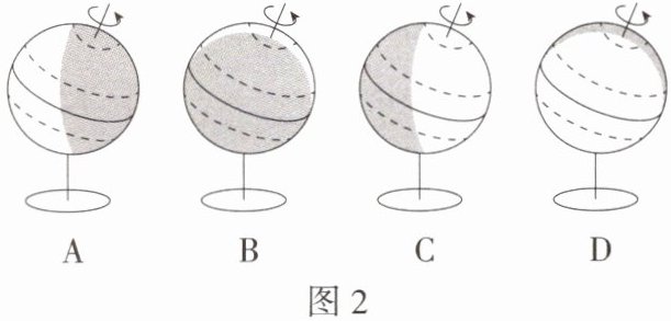 (3) 图 2 为北半球二分二至日的光照图(阴影代表黑夜)。请写出图 1 中丁处代表的节气名称和日期______,并在图 2 中选出对应的光照图字母______。(4 分)