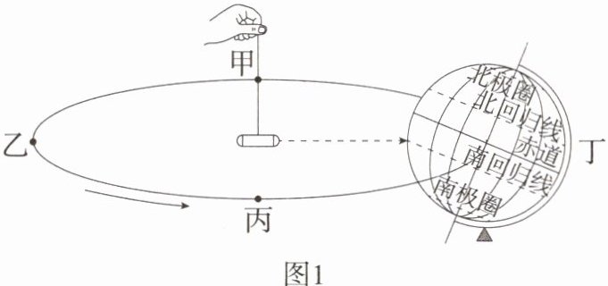 (2) 观察图 1 中丁位置,太阳直射点此时位于哪条纬线上? (2 分)