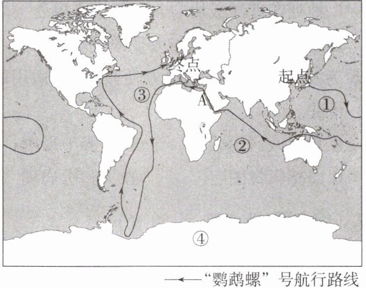 (1) “鹦鹉螺”号从①______洋出发,经过②______洋,穿过亚洲和非洲的分界线 A______运河,到达③______洋,一路向南直达④______洲,随之北上抵达终点。(5 分)