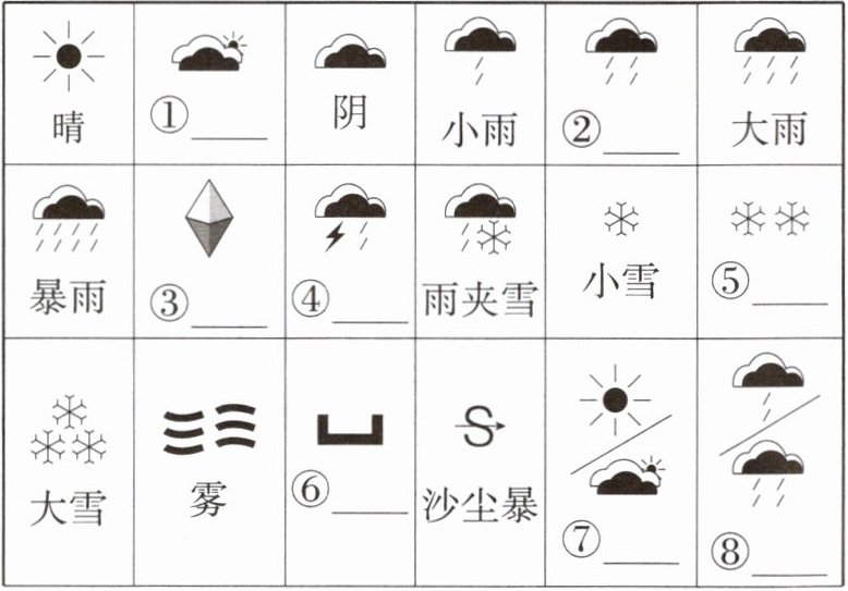 多云 中雨 冰雹 雷阵雨 中雪 霜冻 晴转多云 小雨转中雨