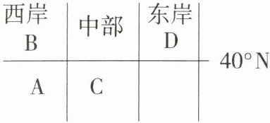 9.D 根据图上A—D的分布判断,A地为地中海气候,主要分布在南北纬30°—40°的大陆西岸;B地是温带海洋性气候,主要分布在中纬度40°—60°的大陆西岸;C地为温带大陆性气候,主要分布在亚欧大陆内陆地区;D地为温带季风气候,主要分布在北半球中纬度大陆东岸,D地以南地区为亚热带季风气候。