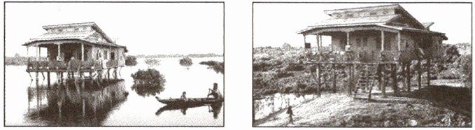 7.C 图中湖水水量的季节变化很大,反映出该地降水量季节变化大的特点。8.B 该民居为高脚屋,具有通风、散热、防潮的效果,主要分布在气候湿热的地区。该地区全年高温,降水季节差异明显,最可能是热带季风气候。