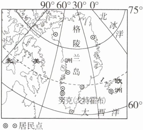 9.格陵兰岛城市主要分布在南部,最可能的自然原因是 ( )