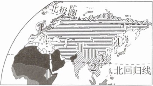 (1)图中亚欧大陆东部自南向北依次是②______气候,③______气候,④______气候,影响这三种气候自南向北分布的因素为______。