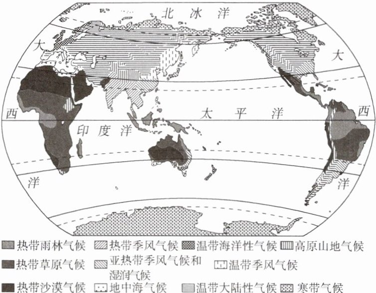 13.下列关于世界各气候类型分布的叙述,正确的是 ( )