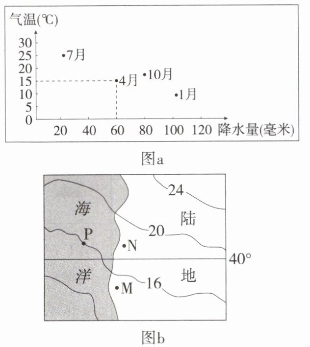 12.图 b 中,P、N 两地纬度相同。下列说法正确的是 ( )