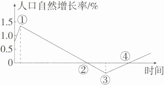 4.C 人口自然增长率出现②→③这种变化时,人口自然增长率小于0,人口老龄化程度会不断加深,健全养老机制是应对人口老龄化的有效措施。