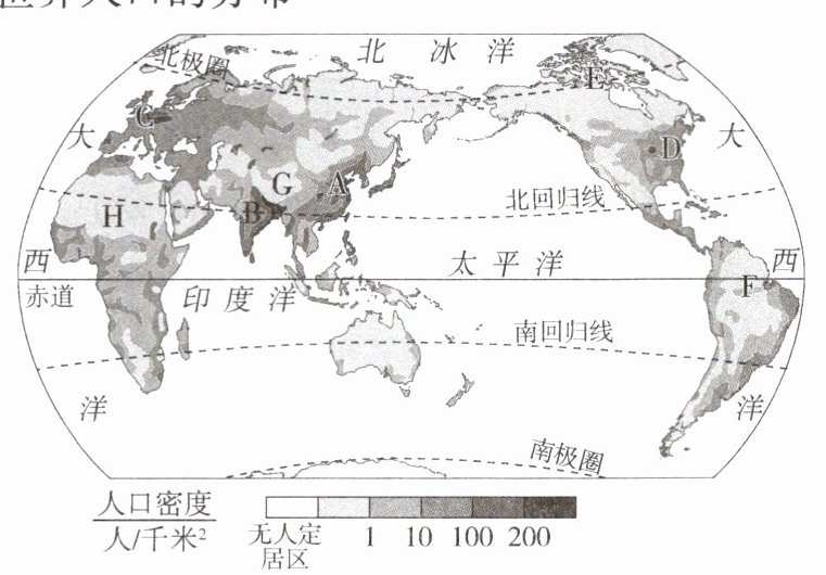(2)人口稀疏区:E____、F____、G____、H____。