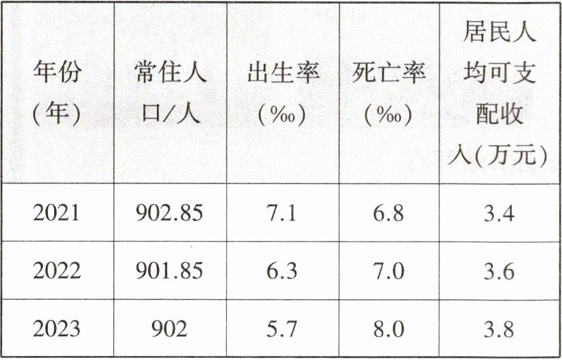 「2025广东江门鹤山期末」随着经济和社会的发展,徐州市人口增长特点发生了较大变化。下表为2021—2023年徐州市人口和民生相关数据统计表。完成16—17题。