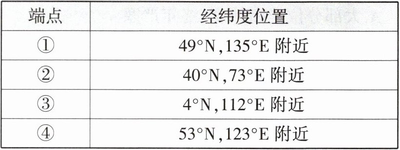 「2025河南南阳月考」下表为我国领土四端点的经纬度位置,据此完成8—9题。