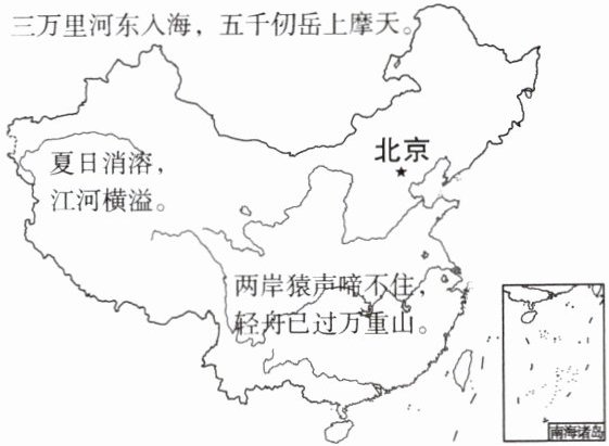 「2025河北沧州月考」某学校地理兴趣小组的同学把一些关于河流的诗词标注在地图上对应的位置,得到了一张“诗词水文地图”。读图完成9—11题。