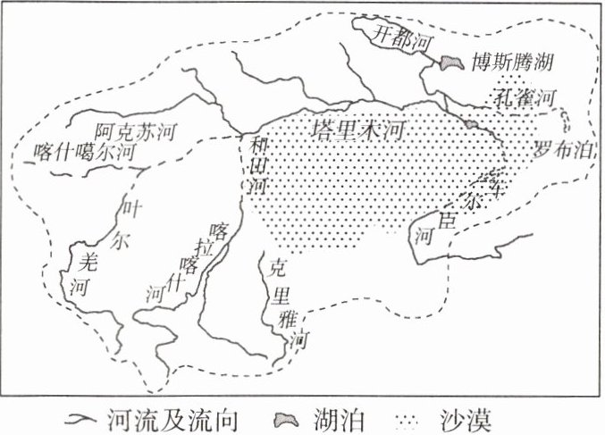 「2025河南新乡月考」2024年9月9日11时,第25次塔里木河集中生态输水水头成功到达台特玛湖,再次实现全线通水。塔里木河全长2486千米,哺育着新疆近一半的人口。读塔里木河示意图,完成6—8题。