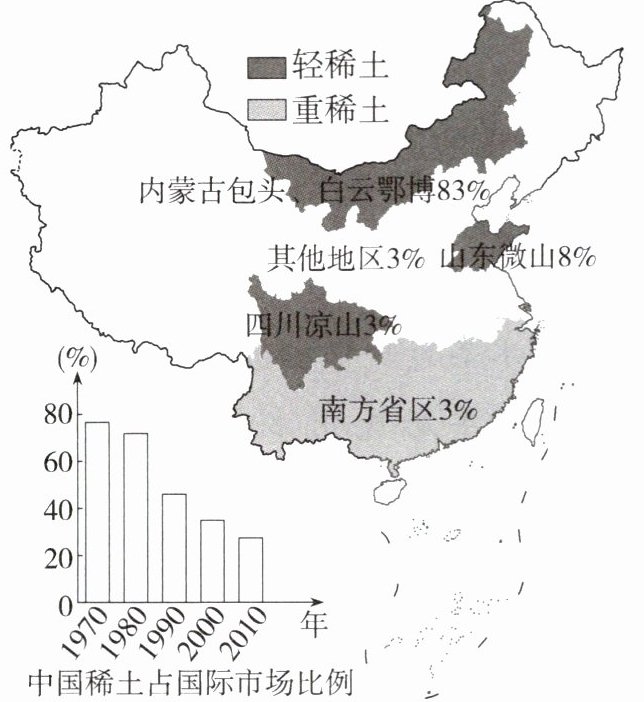 5.1970—2010年中国稀土占国际市场比例的变化趋势是 ( )