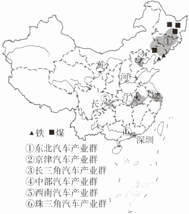 (2)我国第一个汽车制造厂诞生于东北汽车产业群,主要的自然原因是什么? (2 分)
