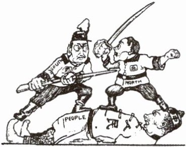 根据题干中的“1918年”可知,当时是北洋军阀统治时期,结合图片信息“人民被南北军阀踩在脚下,南北军阀刀枪相向”可知,军阀割据混战,带来极大危害,使得民不聊生。