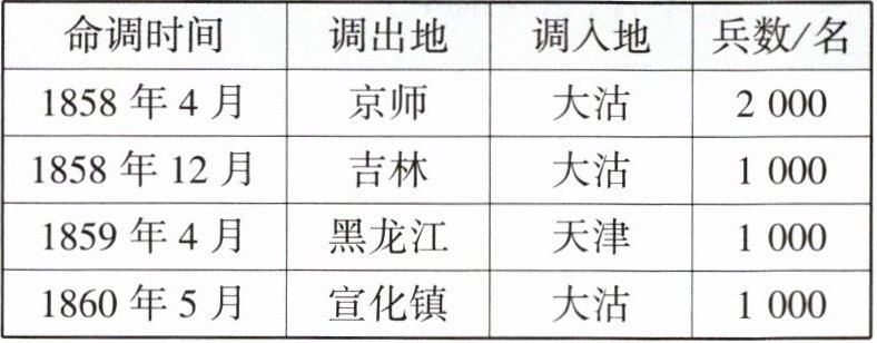 3.「2025 天津市河北区期末」阅读下列清军兵力调动表,分析与此相关的历史事件是 ( )