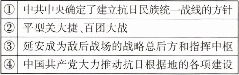 根据题干材料并结合所学知识可知中国共产党确定建立抗日民族统一战线方针推动抗日民族统一战线建立;积极对日作战先后取得平型关大捷、百团大战胜利;大力推动抗日根据地各项建设进一步巩固发展抗日根据地壮大抗日力量。这说明中国共产党在全民族抗战中发挥中流砥柱作用。