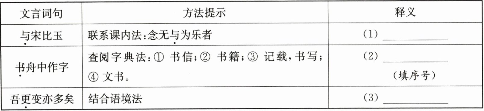|与宋比玉|联系课内法:念无与为乐者|(1)______|