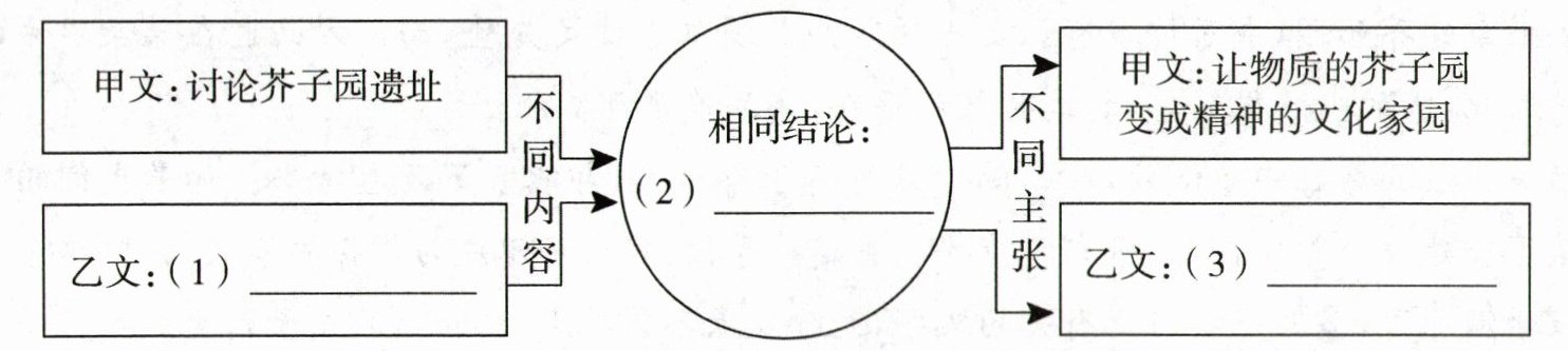 |甲文:讨论芥子园遗址|不同内容|(2)______|不同主张|甲文:让物质的芥子园变成精神的文化家园|