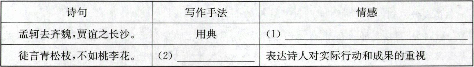 |徒言青松枝,不如桃李花。|(2)______|表达诗人对实际行动和成果的重视|
