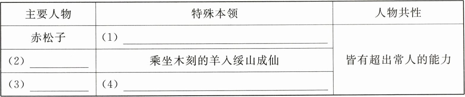 |赤松子|(1)______|皆有超出常人的能力|