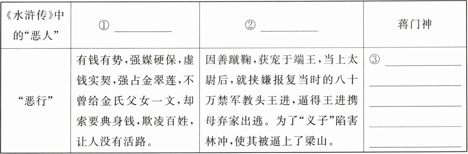|《水浒传》中的"恶人"|①______|②______|蒋门神|